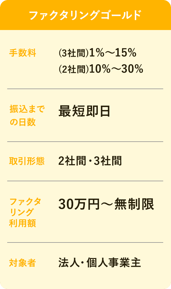 あの時ゴールドさんに救われたことを今でも感謝しています。大きな工事の依頼で外注費を、前払いしなければいけなかった所を救われました。